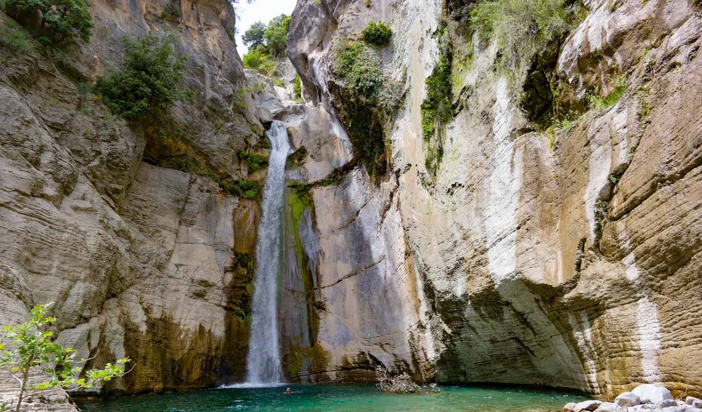 Στο τέλος της πεζοπορίας, θα φτάσετε στη βάση του καταρράκτη, όπου μπορείτε να δροσιστείτε στα δροσερά νερά και να απολαύσετε την εκπληκτική θέα.